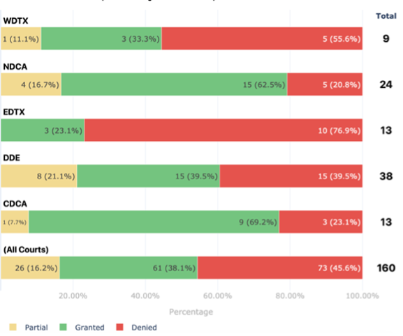 على المستوى الجزئي، وربما ليس من المستغرب عندما يتعلق الأمر بذلك أليس التحديات، يجب على المتقاضين الذين يفكرون في أكثر أماكن الحصول على براءة اختراع أن يدركوا أن مالك البراءة من المرجح أن يواجه صعوبة أكبر بكثير في اجتياز أليس عقبة في كاليفورنيا مقارنة بتكساس. في عام 2023، أثبتت ولاية ديلاوير أيضًا أنها تتمتع بولاية قضائية معتدلة لأصحاب براءات اختراع البرمجيات.